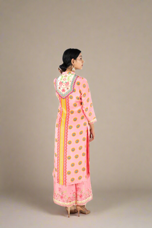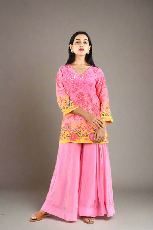 Baby Pink Pure Crepe Kurta & Palazzo Set - Light Sequin Detailing