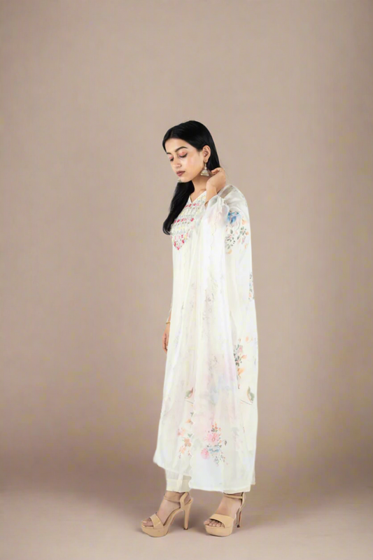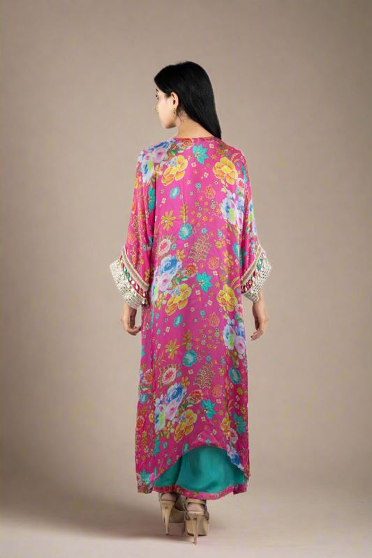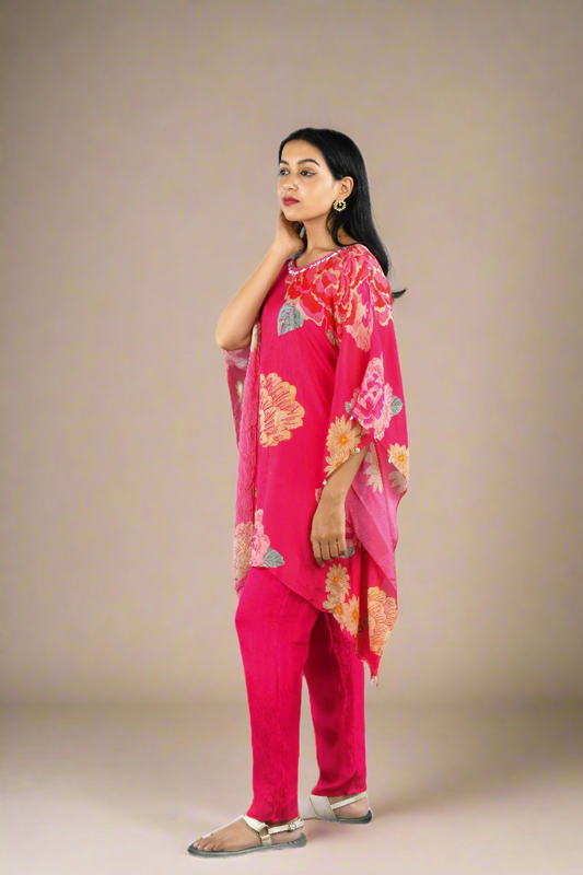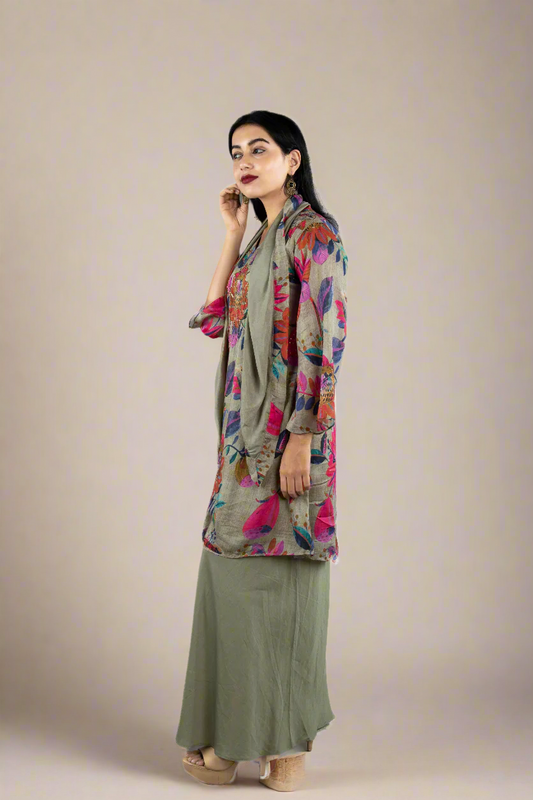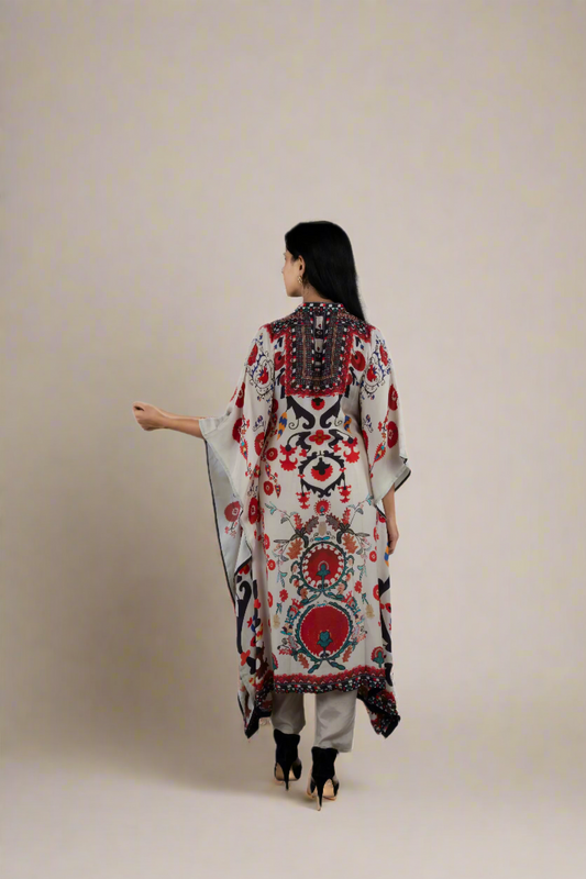 Floral Serenity- Ethnic Floral Printed Embroidered Kaftan